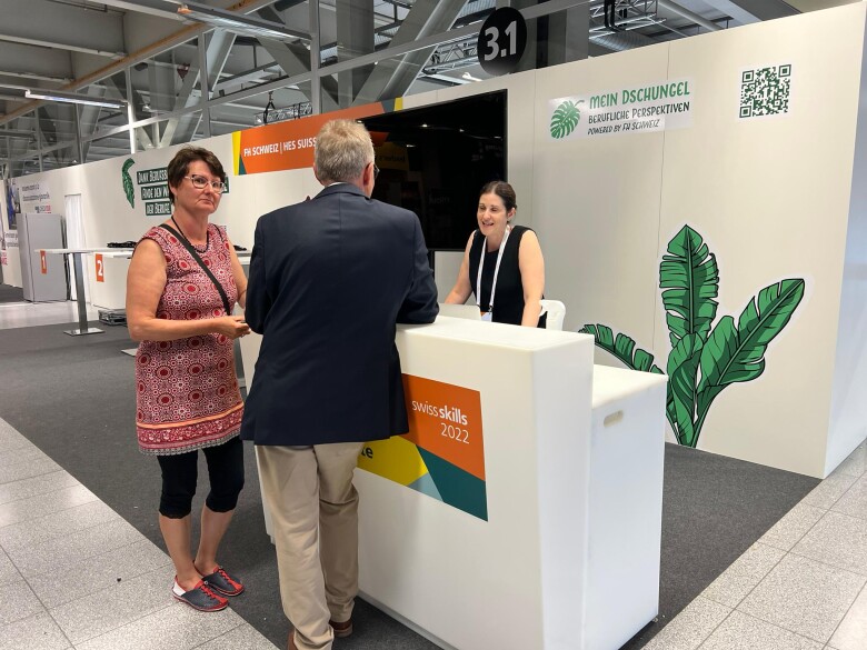 FH-Botschafter Urs Dürsteler mit Alicia Bernasconi von der Geschäftsstelle FH SCHWEIZ
